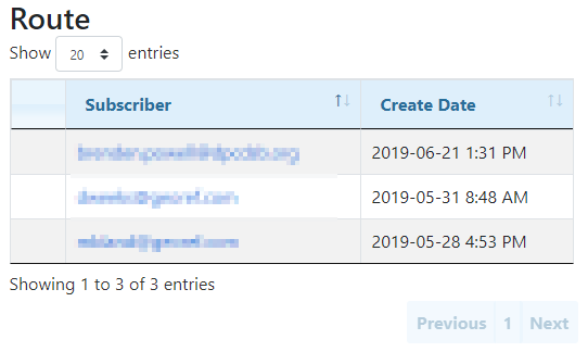 Subscriber Statistics tells you how many subscribers bus stops, routes, runs, schools and general notices have. It also shows which email addresses are subscribed. 1.Either browse to the statistics you wish to see (using the paging at the bottom,) or use the Search: to find a specific school ID, bus stop ID, run ID or route ID.