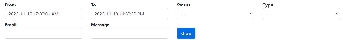 To conduct a search, a user has to enter in a time range to gather statistics from. The Status allows a user to focus in on a particular set of messages waiting to be sent out.
